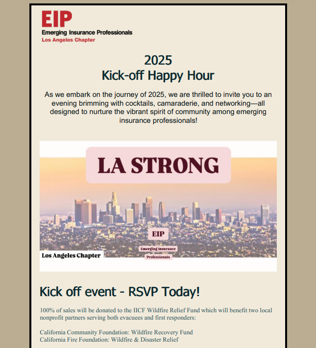 Please feel free to reach out to us at Losangeles.EIP@gmail.com, or connect directly with Nina Rodriguez at Nina.Rodriguez@bhspecialty.com and Gabby Gonzalez at Gabriela.Gonzalez@bhspecialty.com.